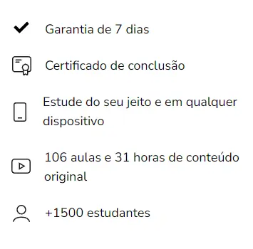 Você tem 7 dias para experimentar o curso sem compromisso. Caso não fique satisfeito, basta entrar em contato que faremos o reembolso completo do valor.